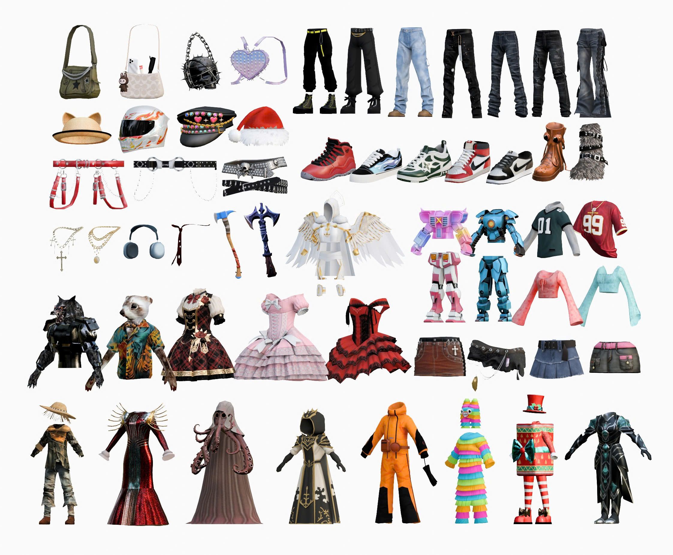 Lưu ý: Vật phẩm là các phần của nhân vật hoặc quần áo, phụ kiện...